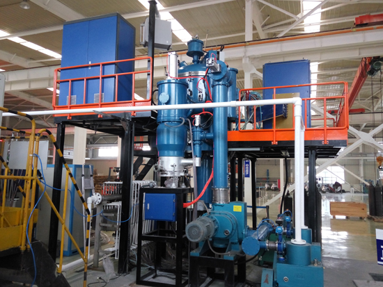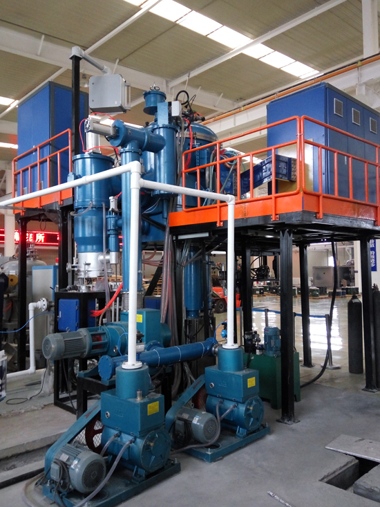 真空感應凝鑄爐是利用中頻感應加熱原理,在真空或保護氣氛下,將稀有金屬或特種合金在熔煉坩堝內(nèi)熔化后,澆入凝鑄模具內(nèi),凝鑄模具通過電阻加熱進行恒溫保溫,在恒溫狀態(tài)下,由模具升降機構(gòu)通過一定速度緩慢將模具移出保溫感應器,通過模具底部托盤水冷及外部水冷罩將金屬液體冷卻凝固;是為各種稀有金屬及特種合金及其它材料的工業(yè)生產(chǎn)和試驗而設計的;真空感應凝鑄爐還具有傳統(tǒng)鑄錠功能,能實現(xiàn)緩冷鑄棒和傳統(tǒng)鑄錠的快速切換。